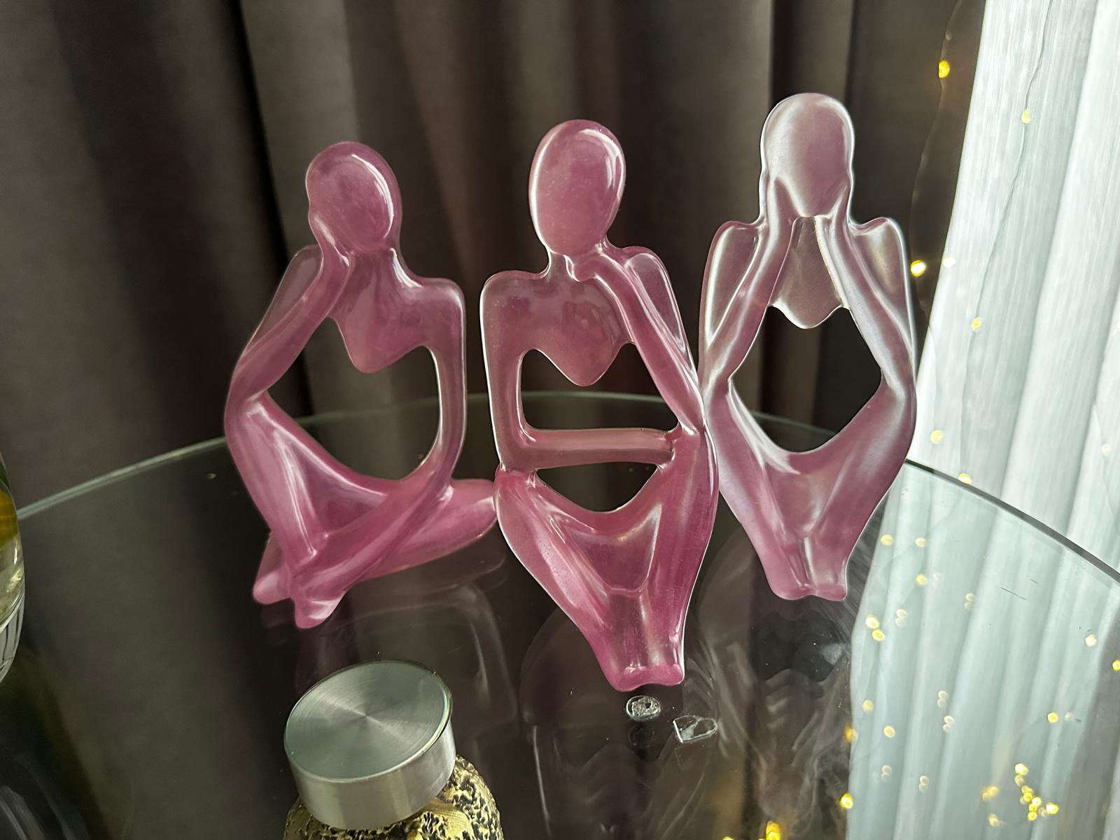 Üç farklı pozda oturan figürler; içsel dengeyi, sessizliği ve farkındalığıtemsil eder. Meditasyon köşenize enerji katarken, modern ve minimalist tarzıyla bulunduğu ortama huzur ve estetik katar.